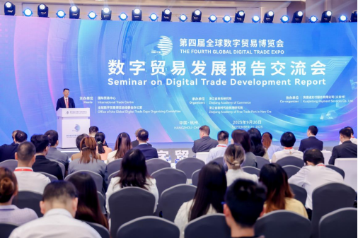 今天上午,联合国国际贸易中心(ITC)与全球数字贸易博览会(简称“数贸会”)组委会共同编写的《全球数字贸易发展报告2025》正式发布。该报告是数贸会的旗舰报告,也是全球数字贸易创新发展的观察指南。《中国数字贸易发展报告2025》同时发布,全国首个数字贸易行业标准《数字交付贸易分类与代码》也正式亮相。